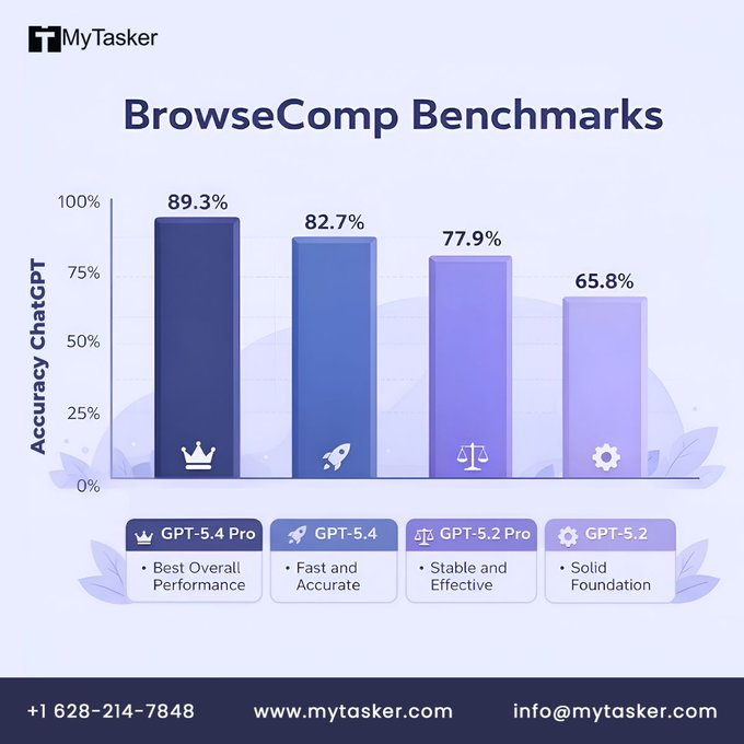 @MyTasker GPT-5.4 Pro is the new benchmark for professional web research. Accuracy isn’t just a metric; it’s a requirement for high-stakes knowledge work. The latest BrowseComp Benchmarks show GPT-5.4 Pro hitting an impressive 89.3% accuracy—widely outpacing its predecessors. dWsGux